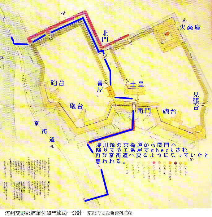 崎(島本町)という要衝に高浜台場があったし、京街道はこの関所(関門)の中を通るようになっていた。会津藩の目論見は正しか