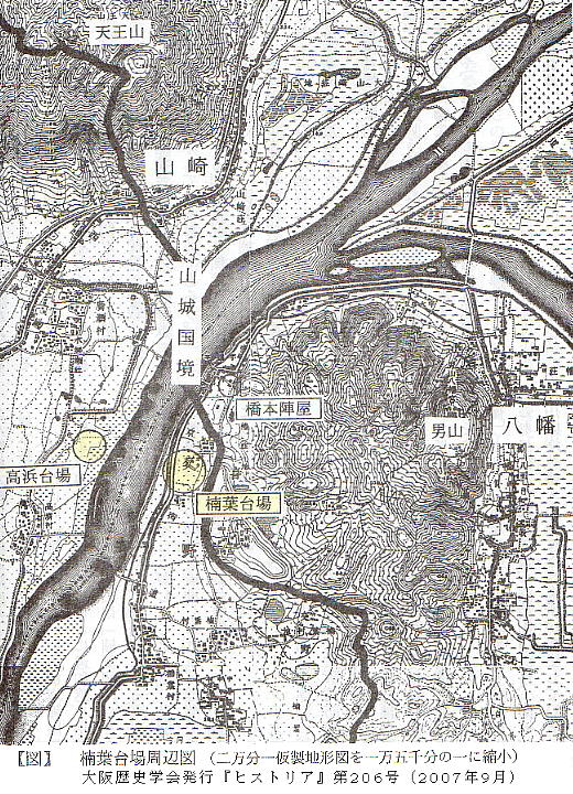 いは奈良・伊勢路を通って大津方向からという進路も無いことは無いが、あまりにも遠回りで現実離れしている)、淀川北岸には山