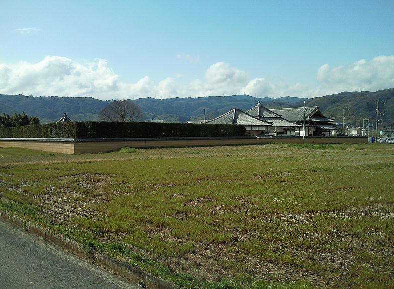 久修園院の裏手は広い水田になっている。ここに「くずはお台場」があった。上は水田側から見た久修園院.