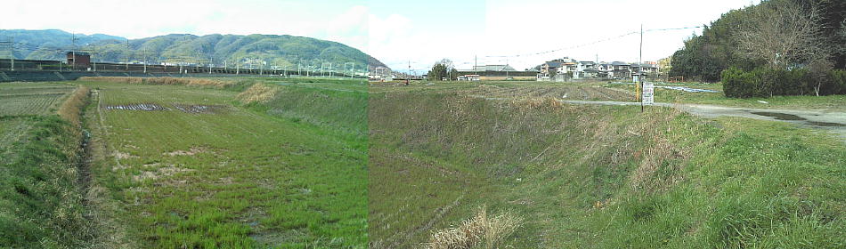 京阪本線建設で削り取られているほかは田畑で、大半が建設当時の地形をほぼ保っている。