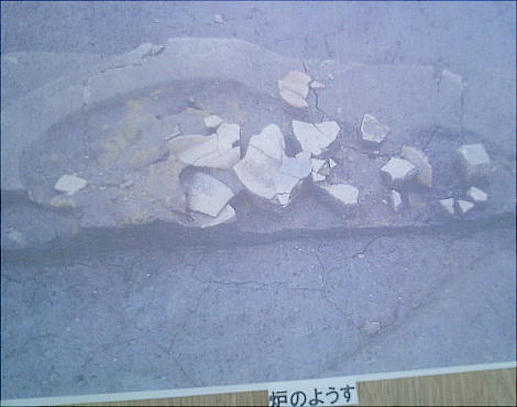 上右、炉の跡を示す係員。