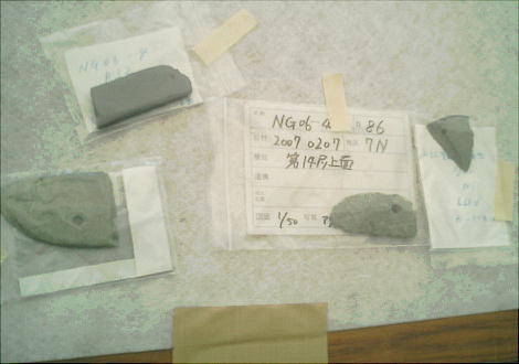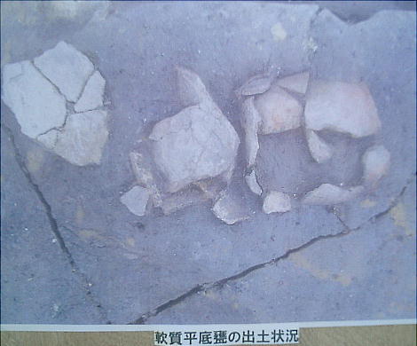 合は、遺跡周辺の粘土でつくられた可能性の高い鳥足文の軟質土器がセットで出土したので、これらの土器は長原遺跡で生活