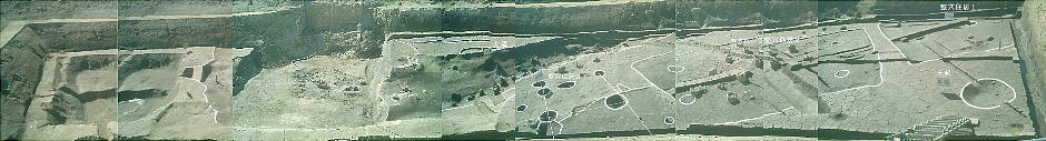 時代の村落をしのばせる住居跡・溝・墓などが一体として見られ、火災にあったらしくその跡をとどめていた。また全長100m