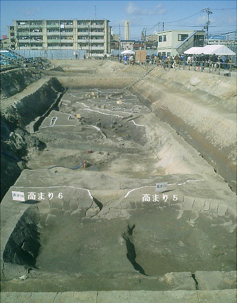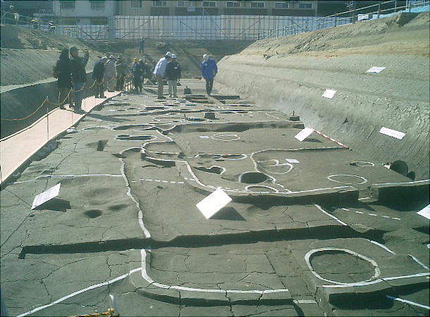 時代(約15,000〜16,000年前)・縄文晩期(約2,500年前)から江戸時代に至る複合遺跡である。地下鉄工事や道路建設、住宅