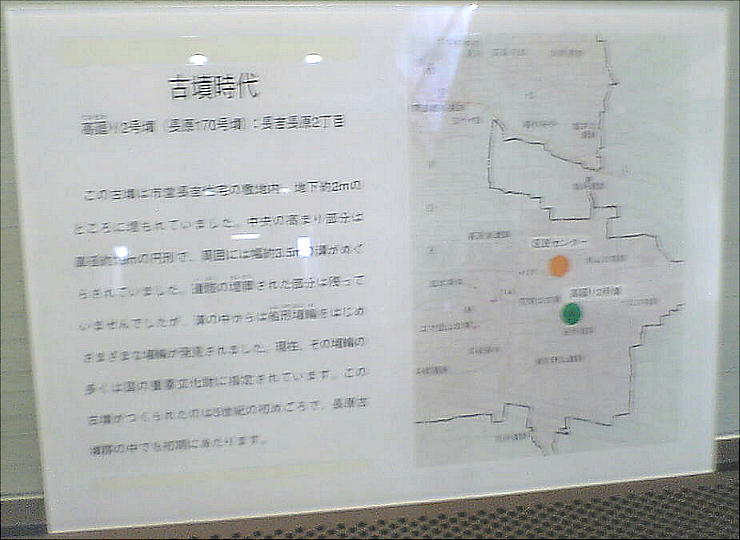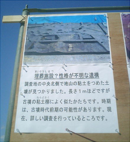 古墳時代前期には墓域、古墳時代中期には再び集落へ、という土地利用の変遷も分かっている。以下の写真は、会場の立て看板に