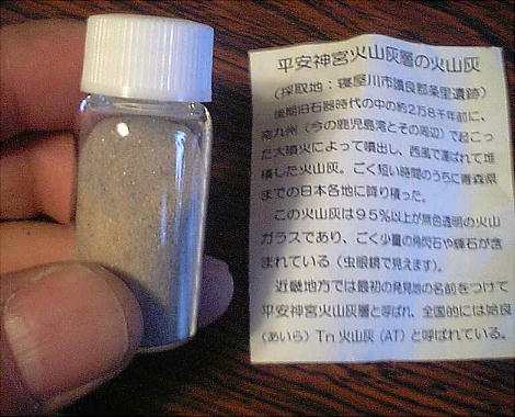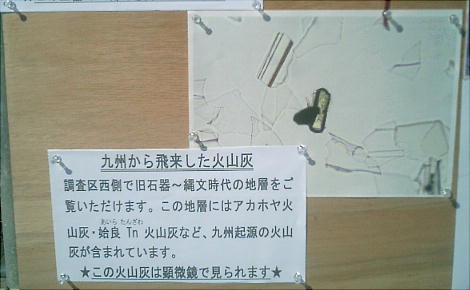 はないが、説明会で先着順で配っていた。2万8千年前に日本中へ飛んでいった火山灰である。年代推定の確かな指針となる。