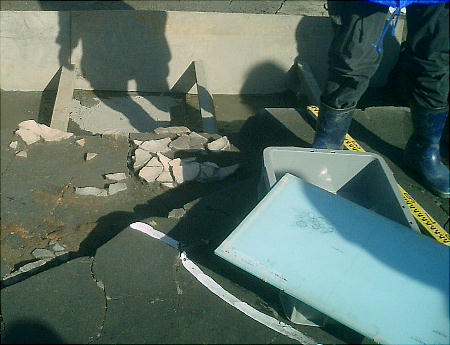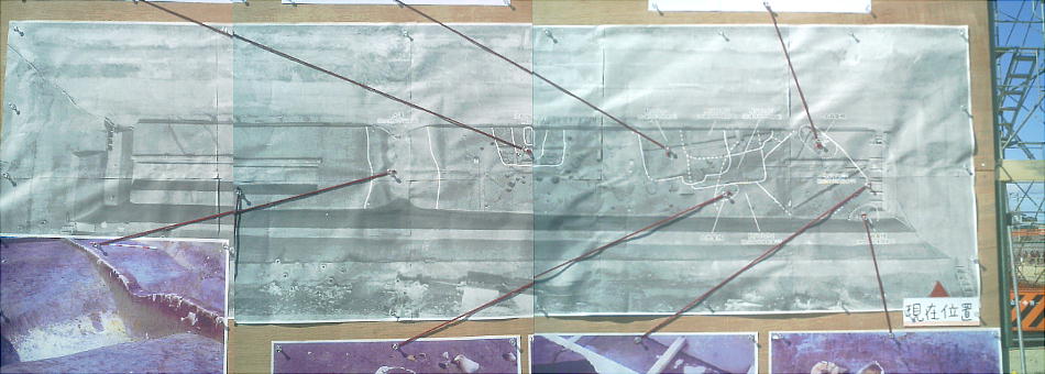 貼られていた、今回の調査の結果(上の写真中央)。