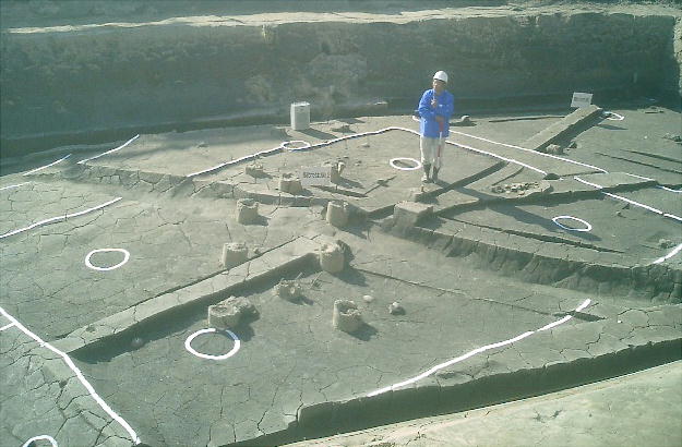 暮らす場だったようで、井戸や土器捨て場などが見つかっている。