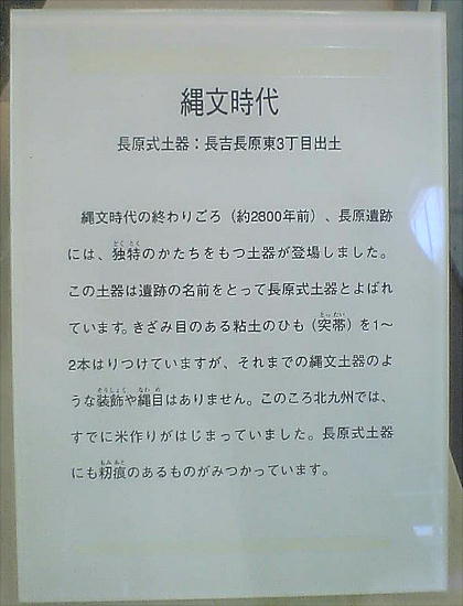 時代では晩期の集落から遺跡名を冠した長原式土器が、弥生時代では水田跡が見つかっている。古墳時代では集落のほか、長原古