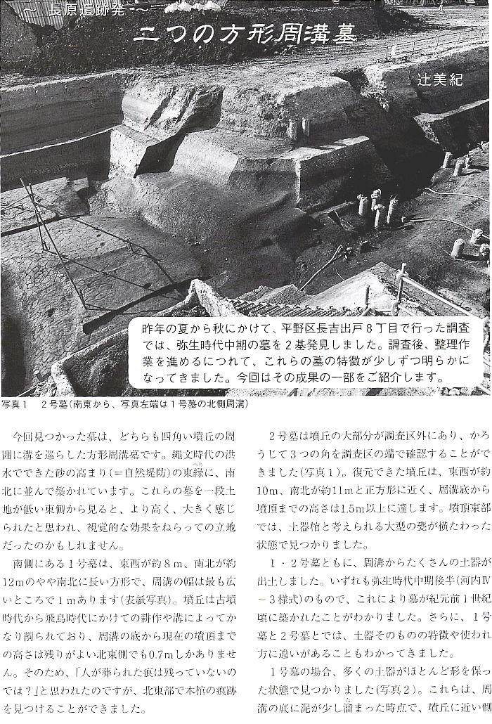 昭和63年春、大阪市平野区長吉・長原古墳群の隣り合った二つの古墳(長原高廻り1・2号、年代は4世紀後半から5世紀は