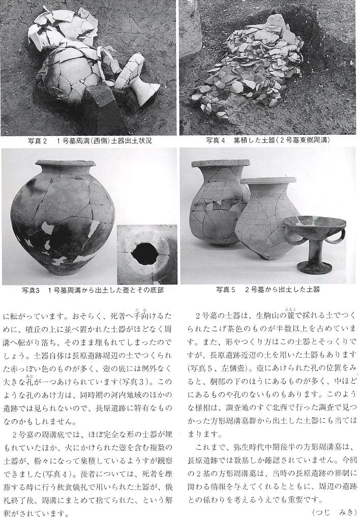 得られている。前回の調査のすぐ北に隣接する今回の調査地でも、多くの遺構や遺物が発見されたが、中でも弥生時代中期後葉か