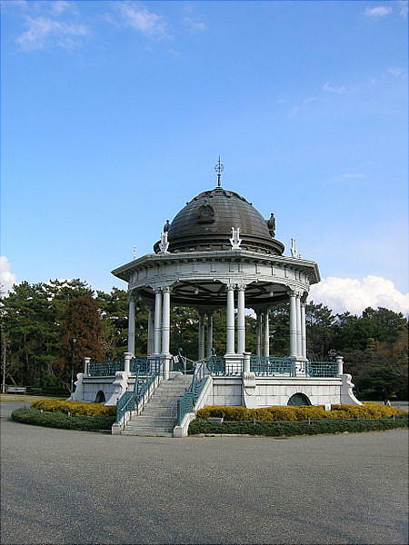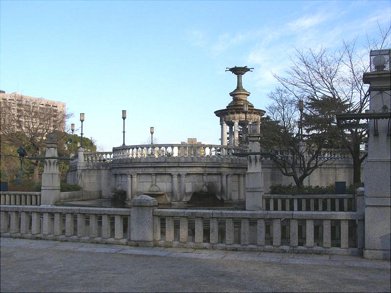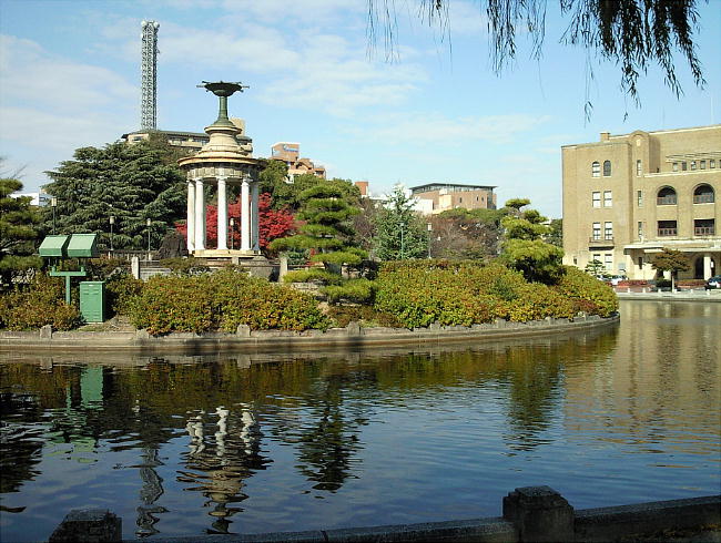 と、正面に噴水塔が位置している。すぐ南に普選記念壇があり、公園のほぼ中央にあたる。その東に奏楽堂が位置し、東北に北花壇、南