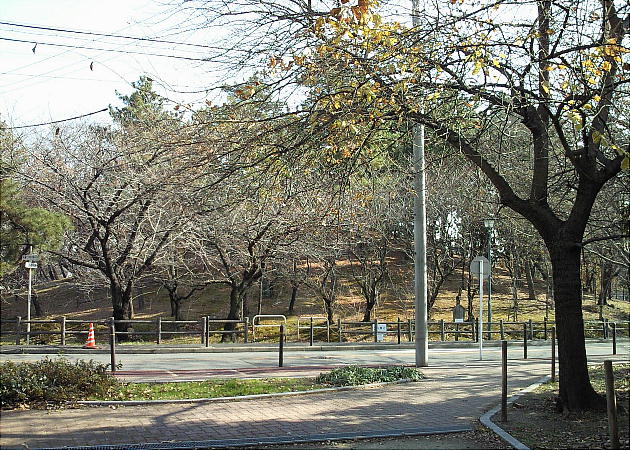は緑地保全地区に指定されているが、昔の深く輝く緑には程遠いもののようである。一方、円周には桜が植えられていて、春は花見