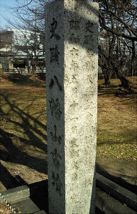 の祠が頭頂部にあったために、「八幡山」と呼ばれる。