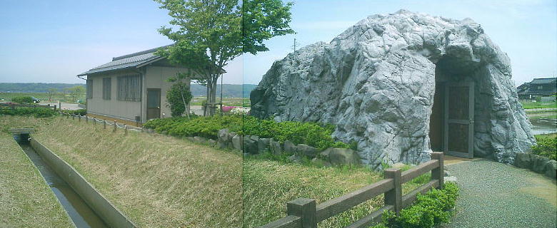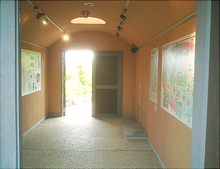 上の巨大な岩石の中が、この遺跡の説明パネルが多数展示されたミニ資料館になっている。