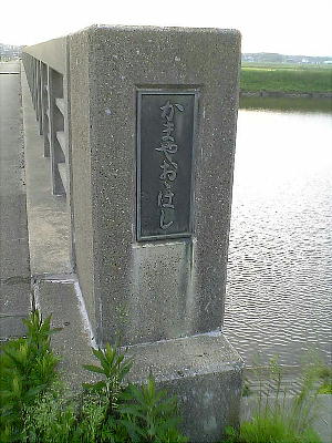 「釜屋大橋」から下流へ下った所から見た遺跡。川を遡って少し先へ行けば邑知潟である。