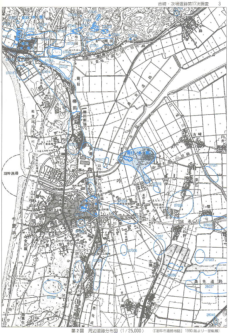 以下の地図・写真は上記の、羽咋市教育委員会発行の報告書から転載させて頂いた。この冊子は市の歴史民俗資料館で販売されている。