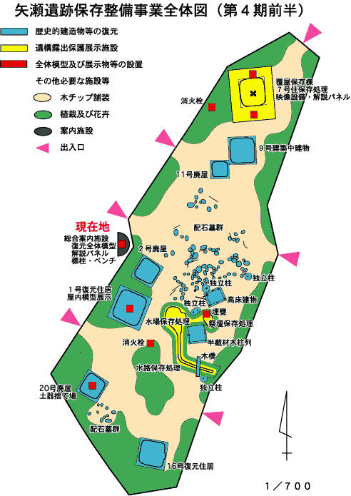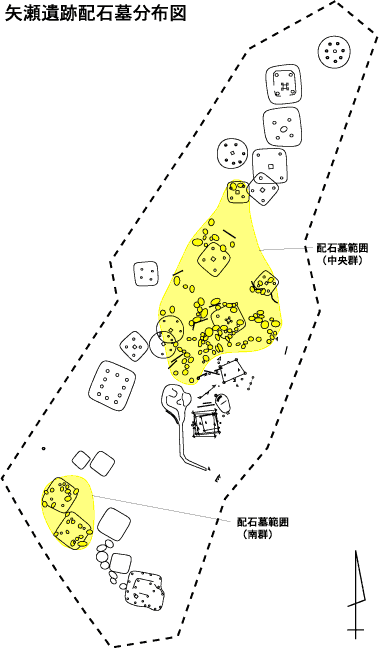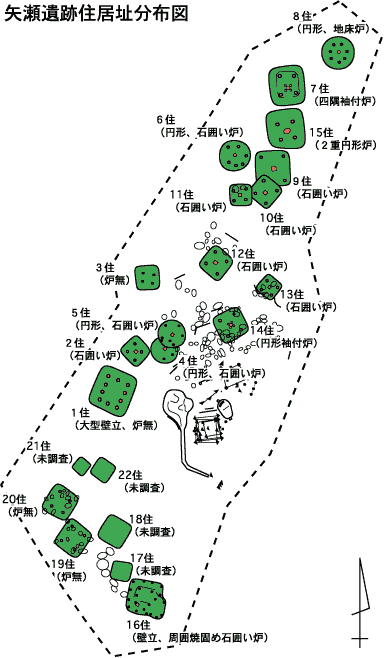 ここで掲示している配置図や地図、および解説は、遺跡近くに居住されている増田さんの「矢瀬遺跡」HPから転載させていただいた。