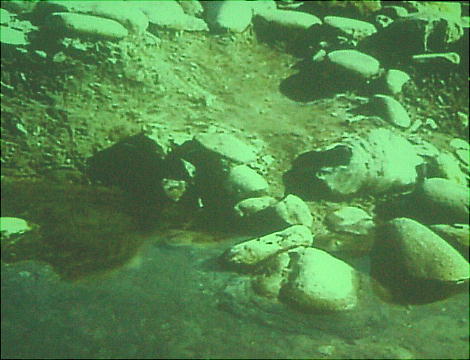 集落内の湧水地点を4.5m×3m、深さ1mほど掘り下げて周囲に河原石を貼り付け、満水位置に足場を設けている。