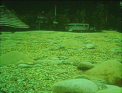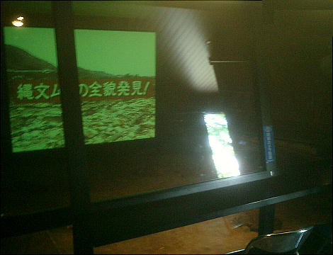 7号住居跡の「四隅袖付炉」の上を覆屋が覆っていて、その中にスクリーンがあってボタンを推せば遺跡の解説をしてくれる。