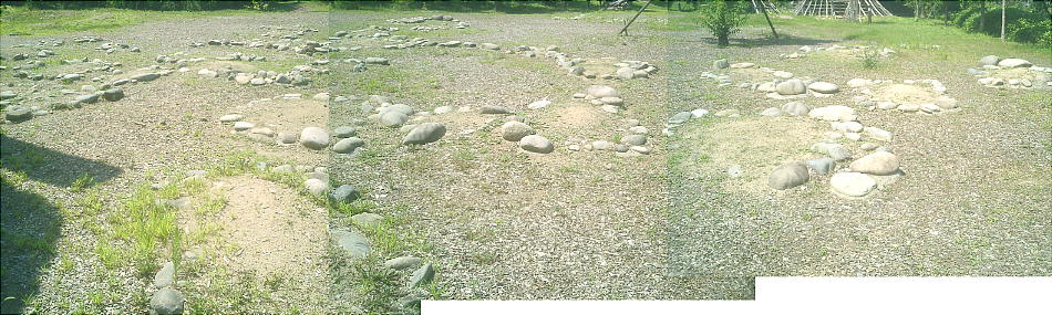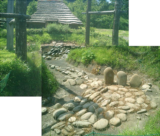 を3つ立てた5m程の特殊な石敷があり、共に儀式場や祭壇等ムラ内の特別な場所であったと考えられる。