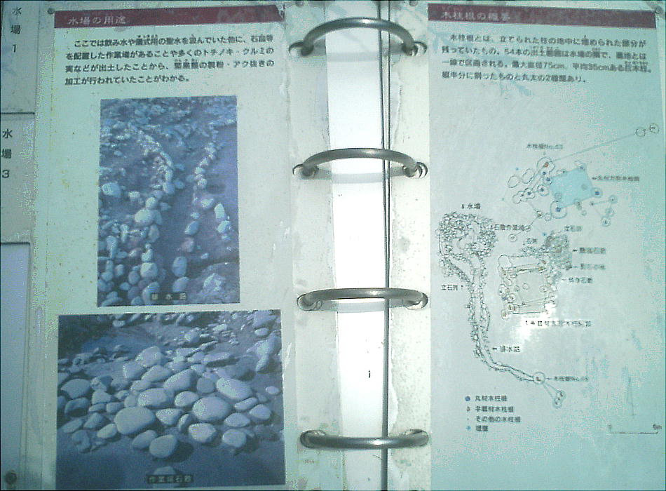 場もあり、水場から多くのトチの実等が出土したことから、堅果類のアク抜き製粉の加工も行なわれていたことがわかった。また、埋