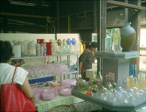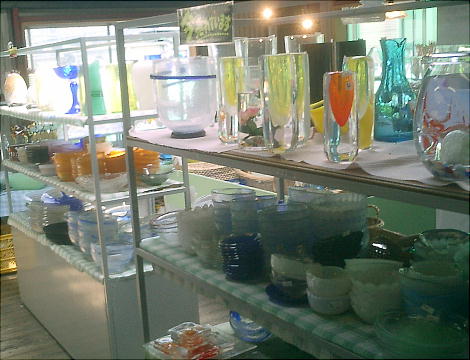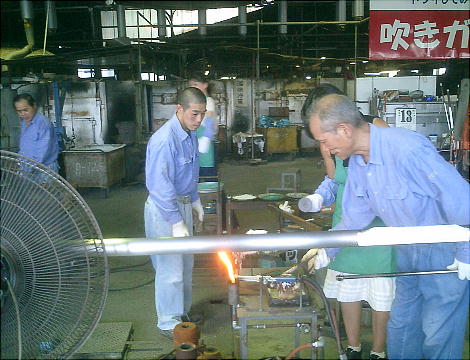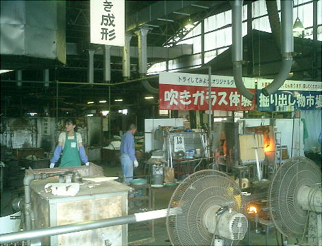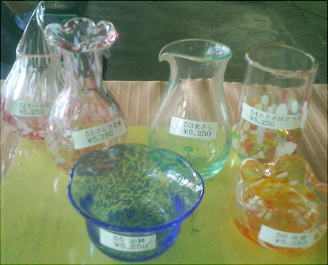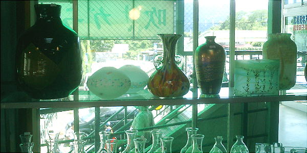 遺跡から関越道「月夜野IC」へ向かっていると、道の側にガラス製造所があった。ガラス工房に通っていて吹きガラスの作品も