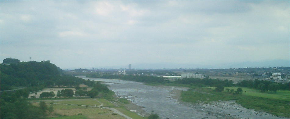 関越道に入ってすぐの光景。上は赤城山系(かな?)と、利根川(下)。