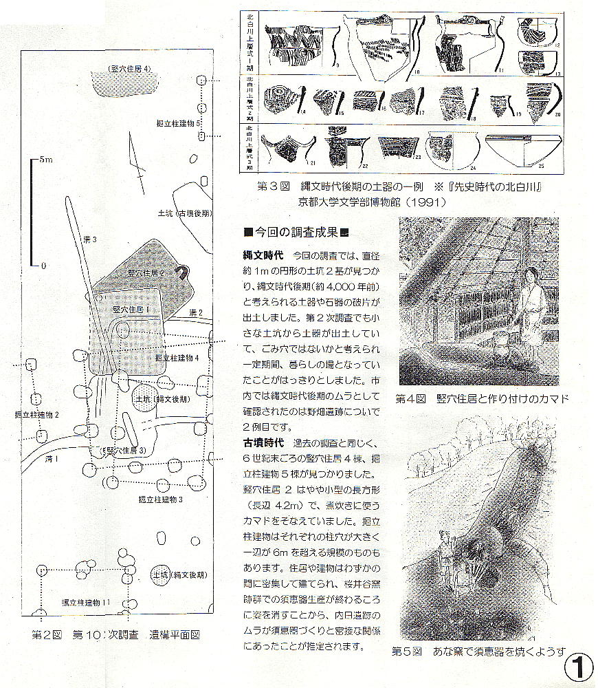 ことが明らかとなった。土抗には縄文土器があり、野畑遺跡についで、縄文時代後期のムラと確認された市内で2例目である。