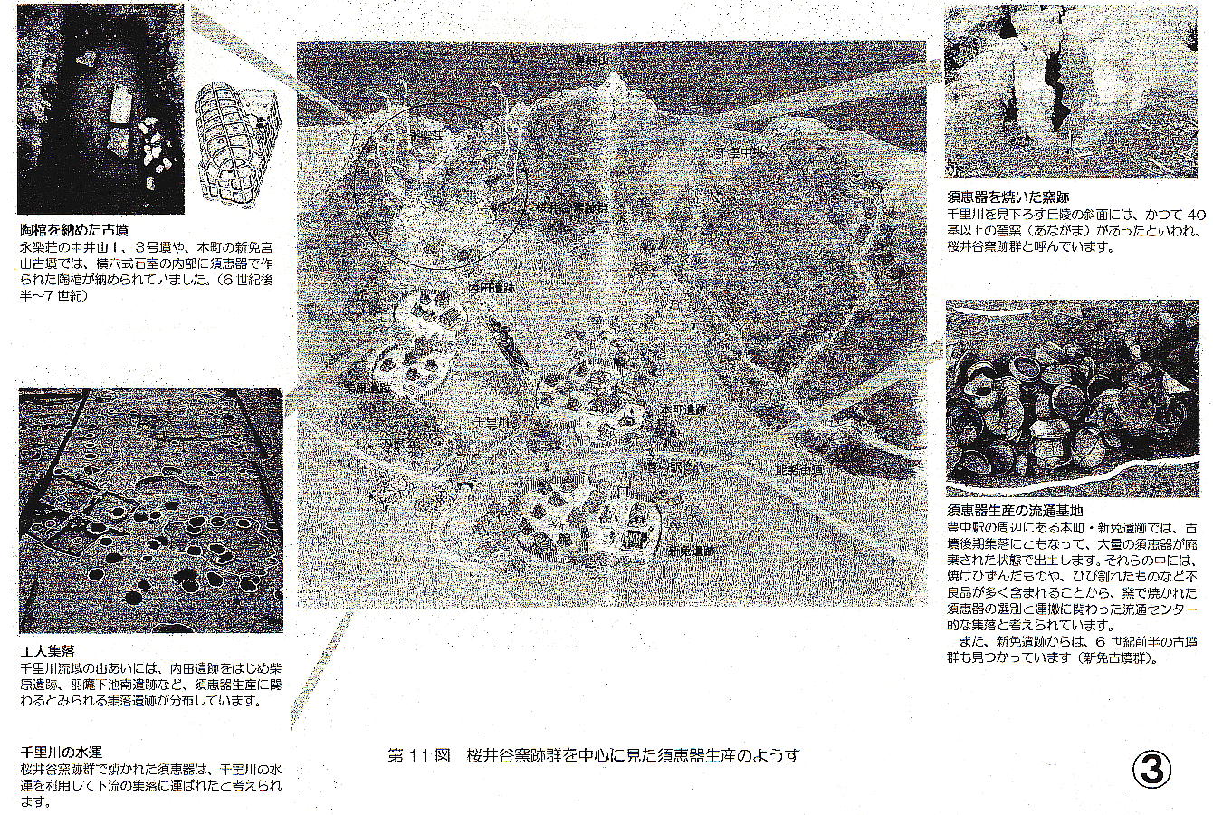 邑につぐ須恵器の窯跡が、旧桜井谷村を中心に、後期古墳群とともに分布している。