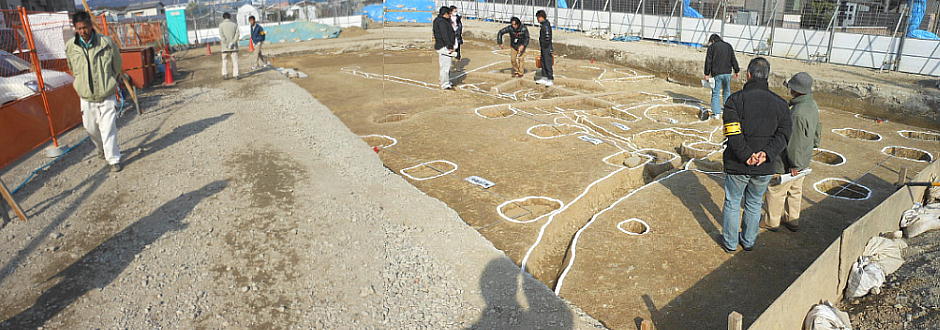 マンション建設に先立つ発掘調査で「内田遺跡」は出土した。「−様」には個人の名前が入っていたので、個人の集合住宅なのだろう。