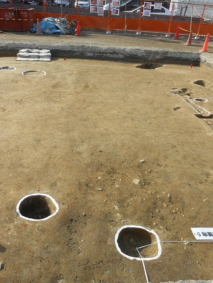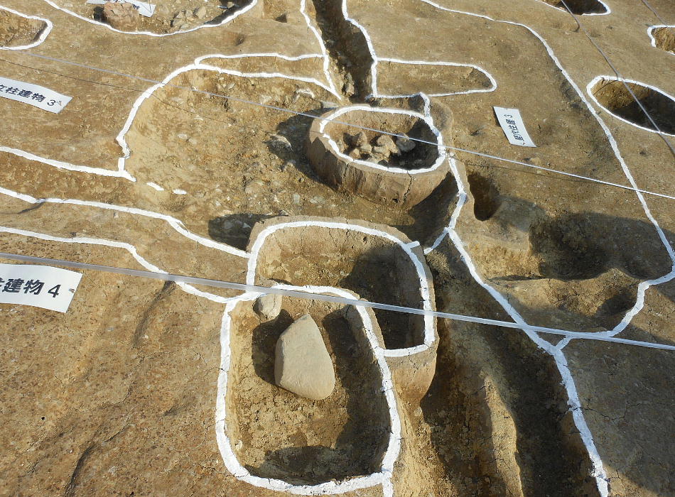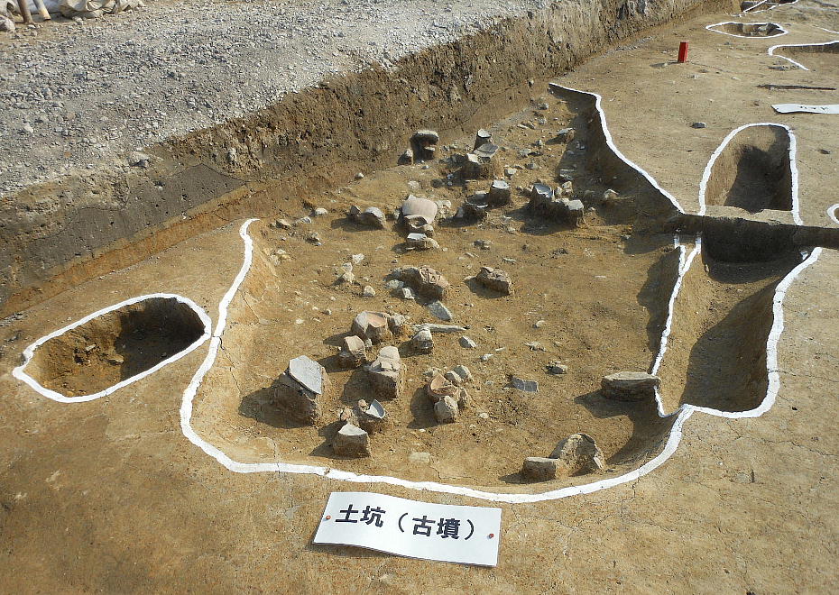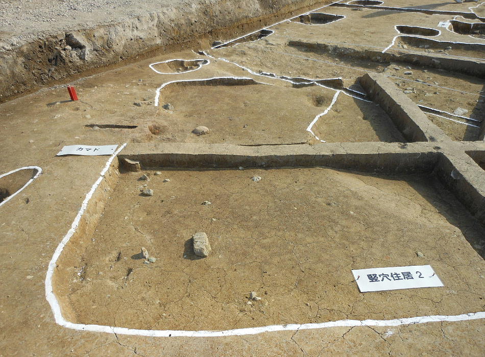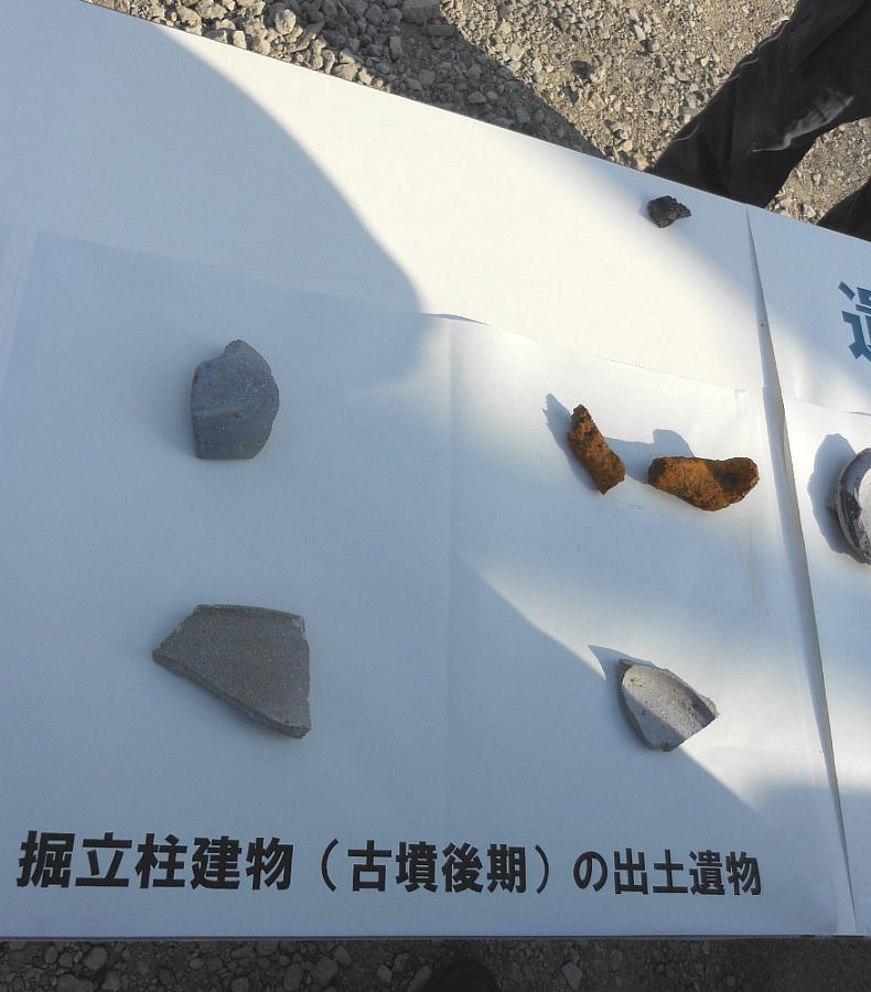 今回の調査で、縄文時代後期の土坑(穴)2基と、古墳時代の遺構として竪穴住居4棟、掘立柱建物5棟が検出され、市内でも有数の