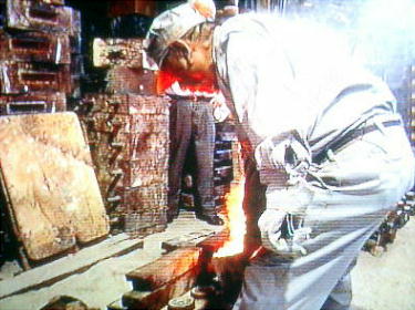 ある銅、錫、鉛を溶かす。 様子である。