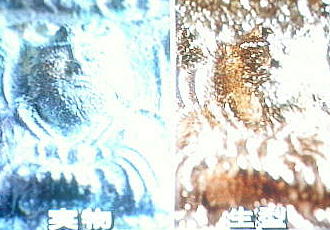 【鋳型片面】鋳造では2つの鋳型を貼り合わせ内部 【鋳型の貼り合わせ】写真は製作した鋳型を組み合わ