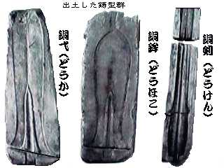弥生時代中期の北九州や近畿の遺跡からは、青銅製品の鋳型が多数出土している。その鋳物工場(?)跡と思われる遺跡