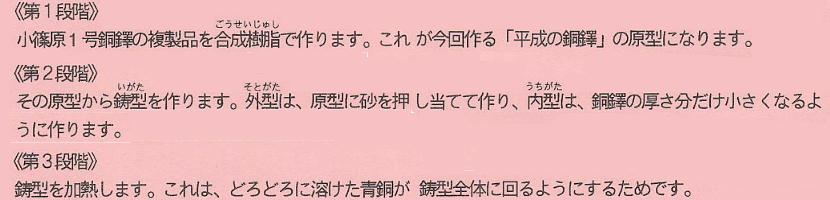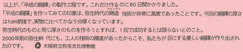 容易な気がするが、例えば厚みが数ミリしかないような銅鐸や、御覧頂いたような巨大な銅鐸の製作には、労力・財力は