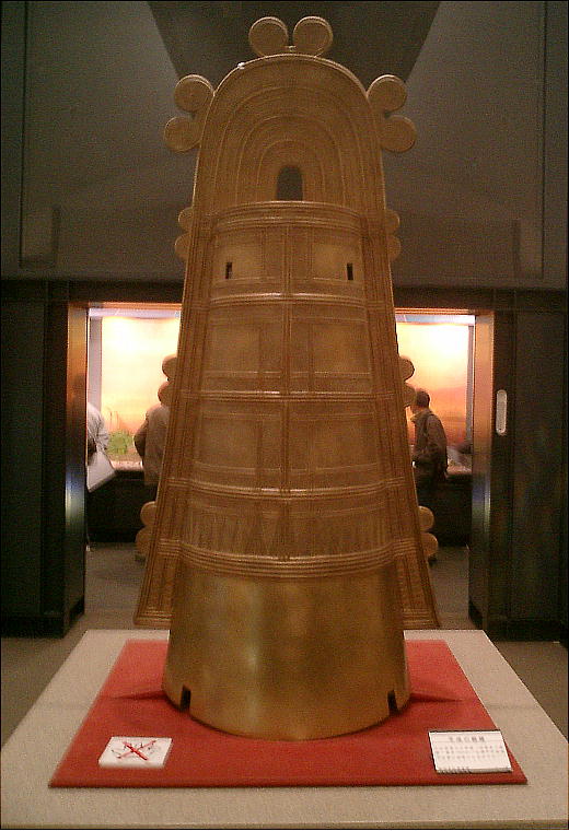 物館が復元した「平成の銅鐸」は、滋賀県出土の突線鈕式銅鐸を現代の技術で再現したものである。つまり、時期がくだ