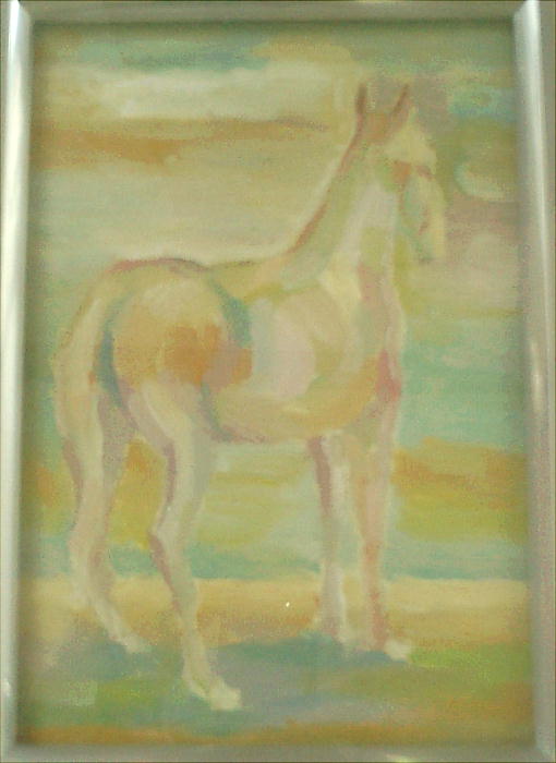 坂本繁二郎。これは繁二郎の奥さんが「主人の絵です。」と言ったものだが、銀座の有名画廊は「自信がない」と鑑定書を出さない。