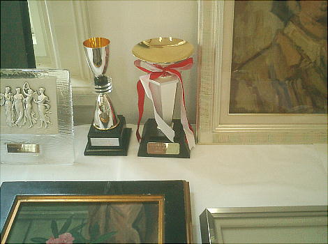 先生があちこちで貰った賞のトロフィーも、所狭しと並んでいる。
