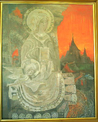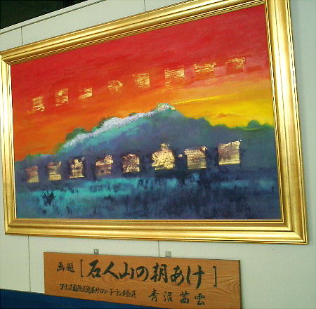 磐井の絵は、実物はポスターとはだいぶ色合いが違っている。青が基調の絵だと思っていたのに、実物は殆ど金色だ。先生