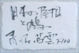 てみた。題名と号数が書いてある、絵の隅に挟んである小さな紙片の裏に先生が「井上さんなら、これで。」と書いてくれ