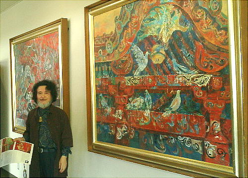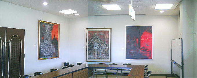 ここは八女のお菓子舗「隆勝堂」である。ここの社長が先生の絵のファンだそうで、部屋の一室が先生のギャラリーになっ