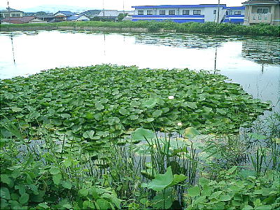 先生のアトリエは木々や竹に囲まれていて、家の前には道を挟んで大きな池があり、蓮が浮いている、昔は一つふたつだっ