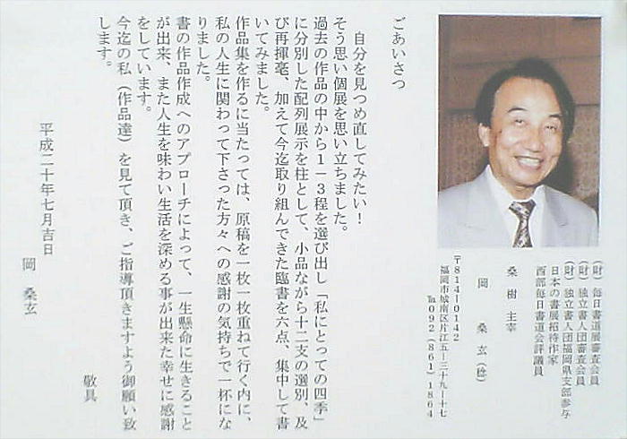 招待した。実はwifeはこの社中同人で、中学生の頃からこの岡桑玄先生について書道を学んでいる。しかし結婚して大阪へ来てしま
