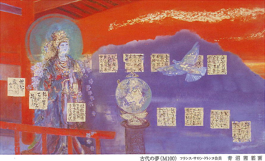 女性はまさしく仏様・菩薩である。現物ではなくこうやってカタログから見た限りでは日本画のようにも見える。