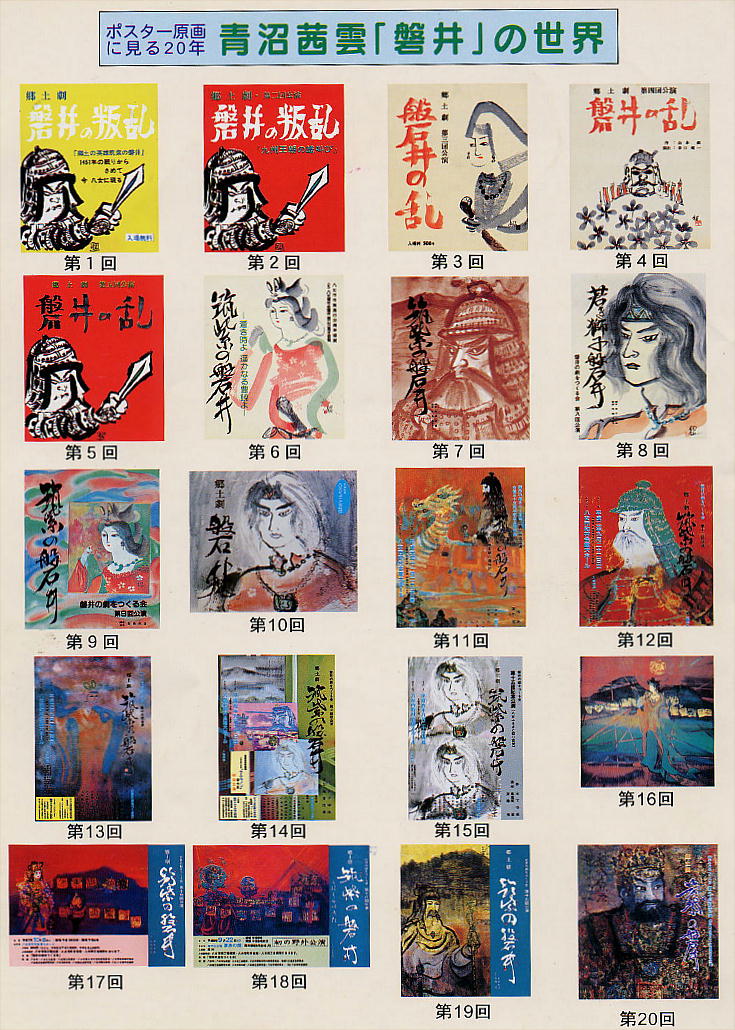 た顔つきに変化していくのである。また上の郷土劇ポスターのタイトルも「叛乱、乱」から、ただの「筑紫の磐井」と変化している。
