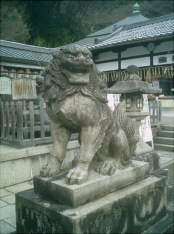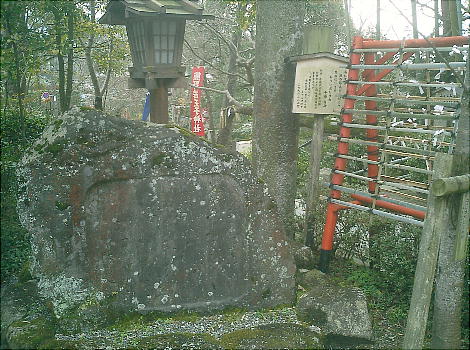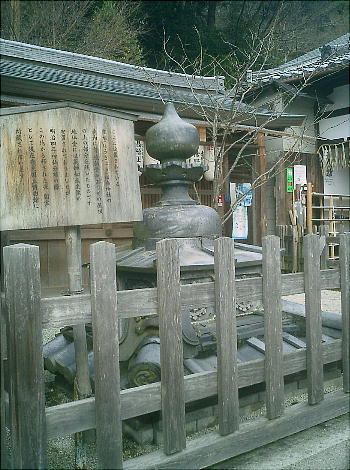 水盤(上)。江戸時代に作られ、鞍馬石の一枚岩で約2トンの重さがある。