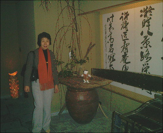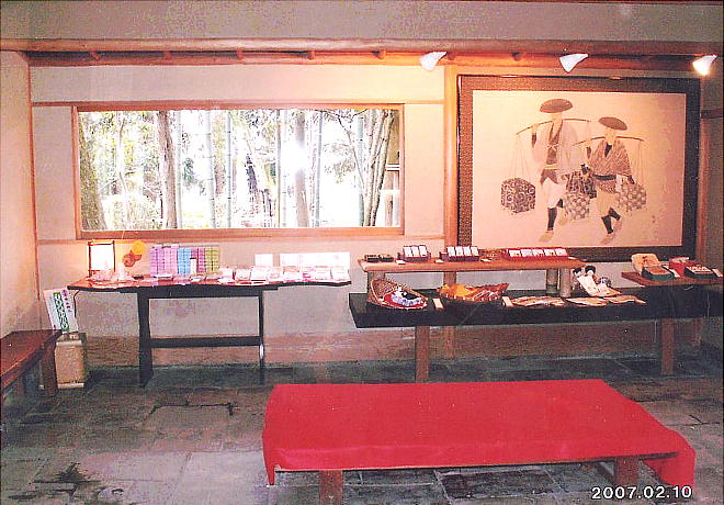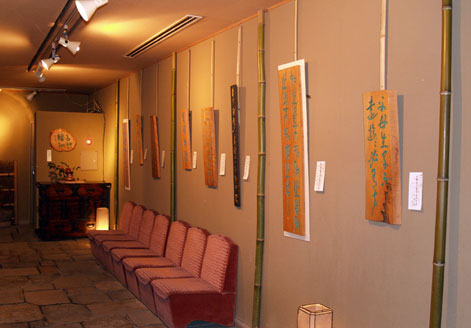 長屋門から入り、中庭を右に回廊を進むと清閑居内に月替りの趣向を凝らした展示ホールがある。食事・茶席の待ち時間の合間に、