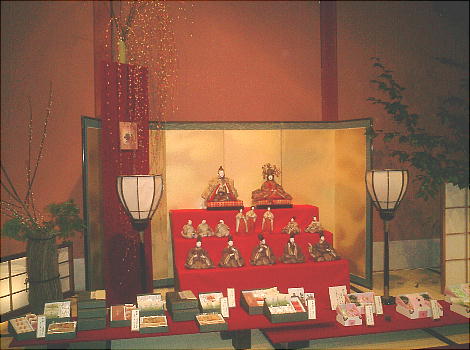 季節感たっぷりのディスプレイと、普段は見ることができない工芸品、コレクション等を身近に見れる。この日は季節柄、ひな人形