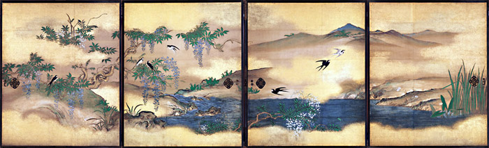 四季花鳥図(鶴沢探真筆)=御常御殿二の間